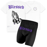 This limited-edition pairing of the Blessed Tee and Blessed Drawlz is crafted for the man who doesn’t chase recognition — he commands it. Every detail, from the royal purple script to the structure of the fit, speaks to discipline, legacy, and self-assured grace.