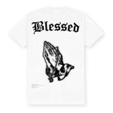 Echoing the quiet confidence of the 'Blessed' boxer briefs, this T-shirt stands as a testament to your inner strength and outward charm. With the iconic image of prayerful hands and the powerful 'Blessed' script emblazoned on the back, it's a bold yet refined statement that transcends mere fashion.